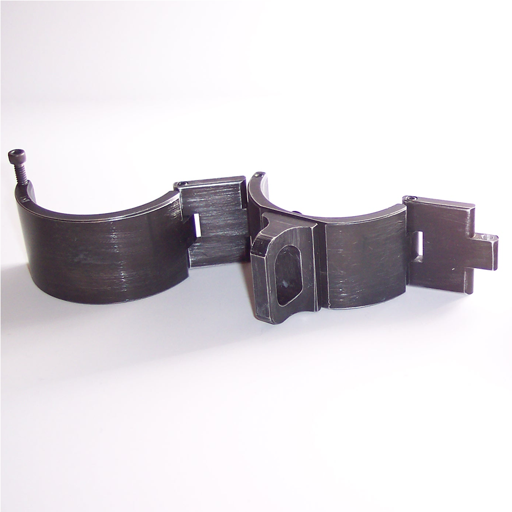 These cuffs are made of aluminum with a brushed black finished, giving them the appearance of being well worn.